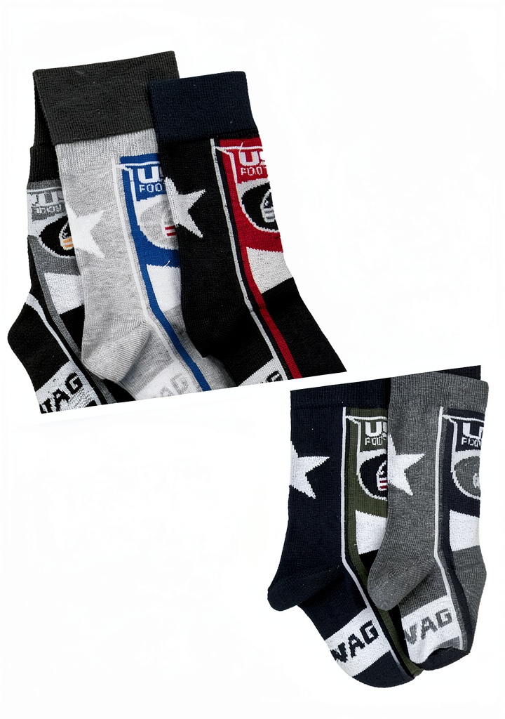 The socks are offered in sizes 2/4, 6-8, and 10-12, with various color and style options such as Twister Basse, Crew Basse, Crew Alte, Bug Basse, Bug Alte, and Starfootball Basse/Alte. Made from high-quality materials, they are lightweight and maintain their shape wash after wash, providing reliable performance throughout the winter season.
