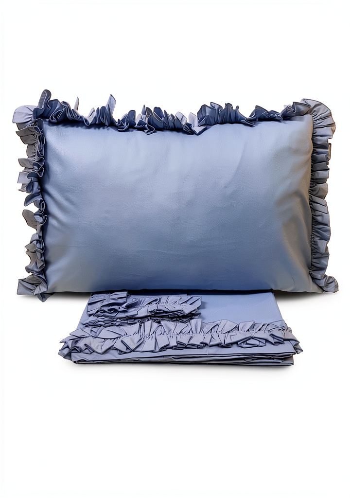 The pillowcases are 50 x 80 cm with ruffled edges, fitting standard pillows and adding a decorative element.